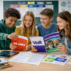 | Kurzbeschreibung: Lernende setzen sich systematisch mit Wahlprogrammen auseinander, arbeiten zentrale Positionen heraus und bereiten diese in einer selbst erstellten Umfrage auf. Durch den Vergleich unterschiedlicher Standpunkte entwickeln sie ein vertieftes Verständnis für politische Inhalte und lernen, Informationen kritisch zu bewerten. Die Ergebnisse bilden die Grundlage für Diskussionen und reflektierte Urteilsbildung. Zielgruppe: alle Schularten und Altersgruppen | Mindestens 4–6 × 45 Minuten oder 1–2 Projekttage |