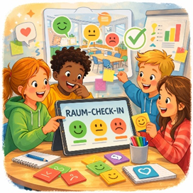 | Kurzbeschreibung: Lernende nutzen minnit′, um Wahrnehmungen von Lernräumen systematisch sichtbar zu machen. Sie reflektieren gemeinsam, wie Räume auf sie wirken und welche Bedingungen gutes Lernen unterstützen oder erschweren. Raum wird so selbst zum Thema des Lernens – nicht erst, wenn Konflikte entstehen, sondern als bewusster Gestaltungsfaktor für Wohlbefinden und Beteiligung. Zielgruppe: alle Schularten und Altersgruppen | 45 Minuten |